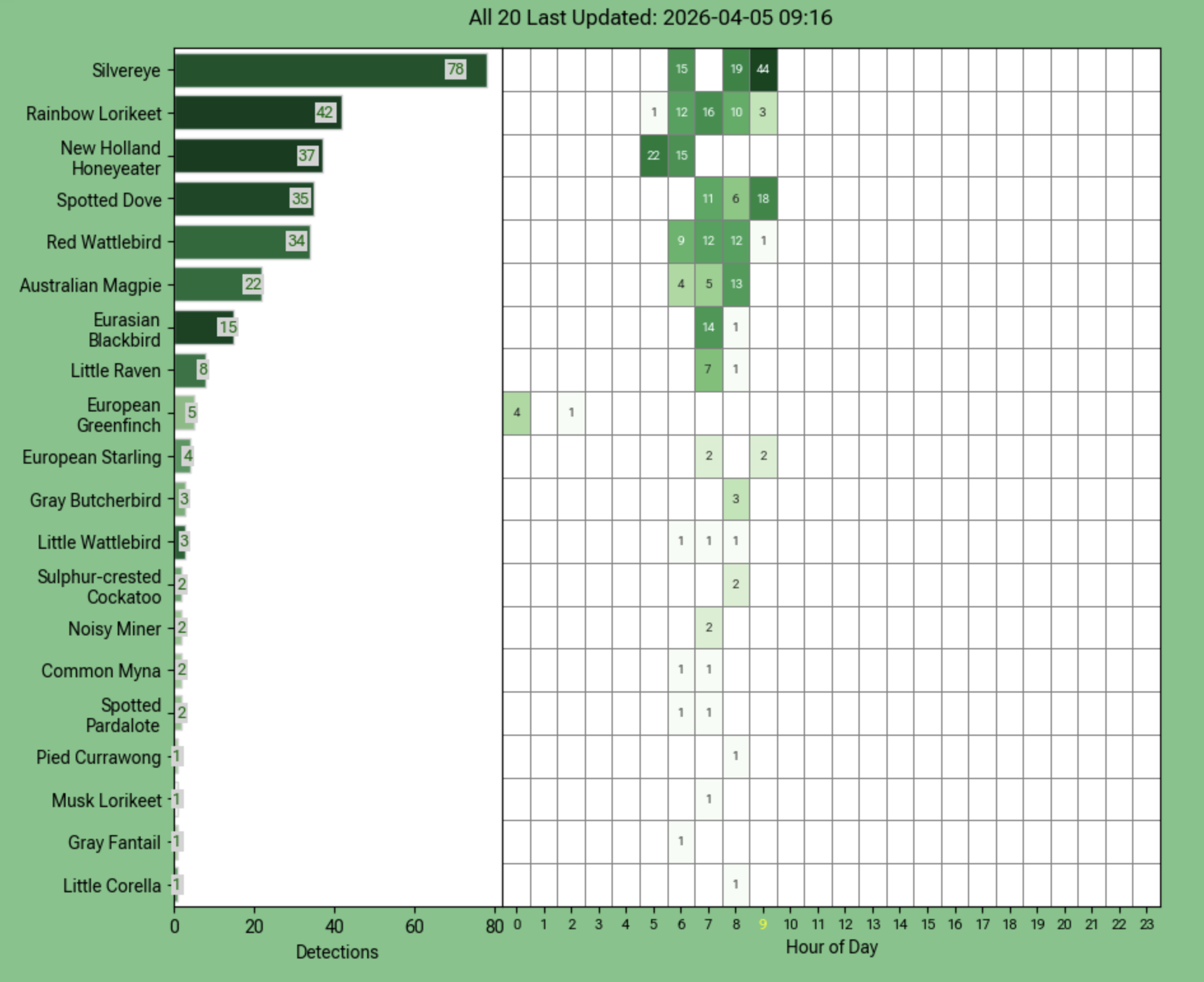 I mentioned recently a really nifty project called BirdNET-Pi (we need more positive uses of AI like this, please!) and last weekend, I set it up. The microphone was just a cheap one to get things started, but it is working quite well - it has detected 35 species! Now, I do think some detections are false positives, but see below a screenshot of this morning for example. Lots of happy feathered wildlife :)